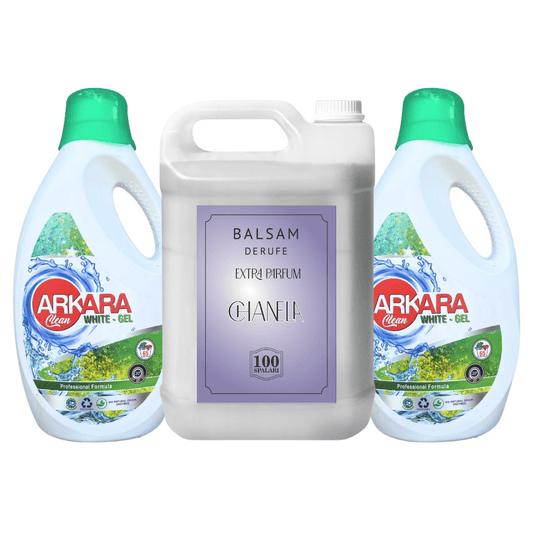 Pachet 2x Detergent Arkara Clean White Gel 5L + 1x Balsam rufe premium Chanela, 5L