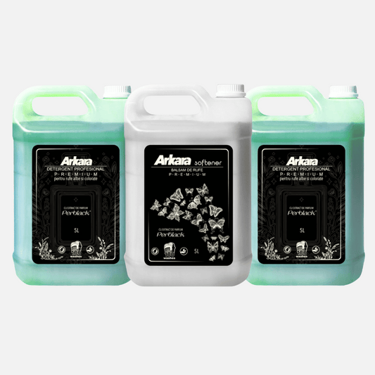 Pachet 2x Detergent rufe Premium Arkara Perblack Verde, 10L + 1x Balsam rufe premium Arkara Perblack, 5L